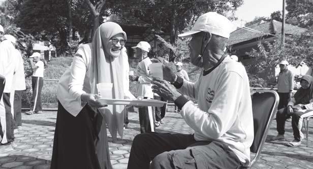ringankan beban hidupnya. Ia pun berharap bantuan tersebut dapat terus dilanjutkan. “Sangat-sangat berharap dilanjutkan (bantuannya) karena ini sangat membantu kami dan kami pun sangat membutuhkannya,” ucap Maswah. Sementara itu, Paijan, seorang kuli bangunan mengaku antusias untuk bertemu dan bersalaman dengan Presiden Jokowi dan mengatakan bantuan pangan tersebut sangat membantu penghasilannya yang tidak menentu.