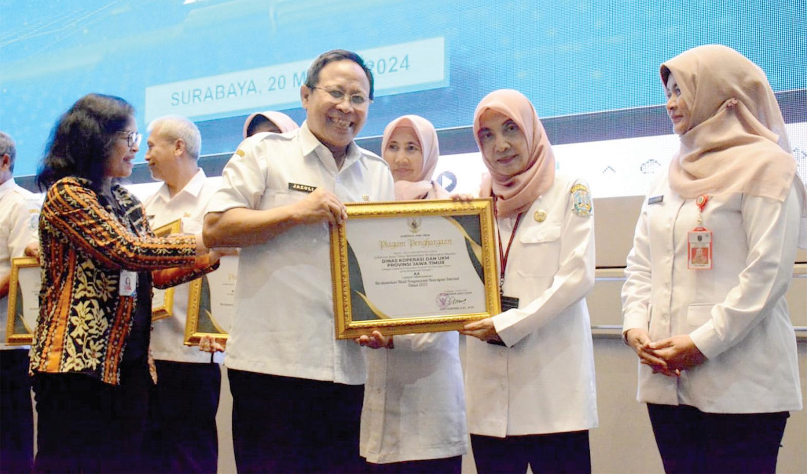 Provinsi Jatim, memberikan penghargaan berupa pengawasan kearsipan secara internal kepada 12 organisasi perangkat daerah (OPD), dan 10 lembaga kearsipan daerah (LKD) kabupaten/kota di Jatim.