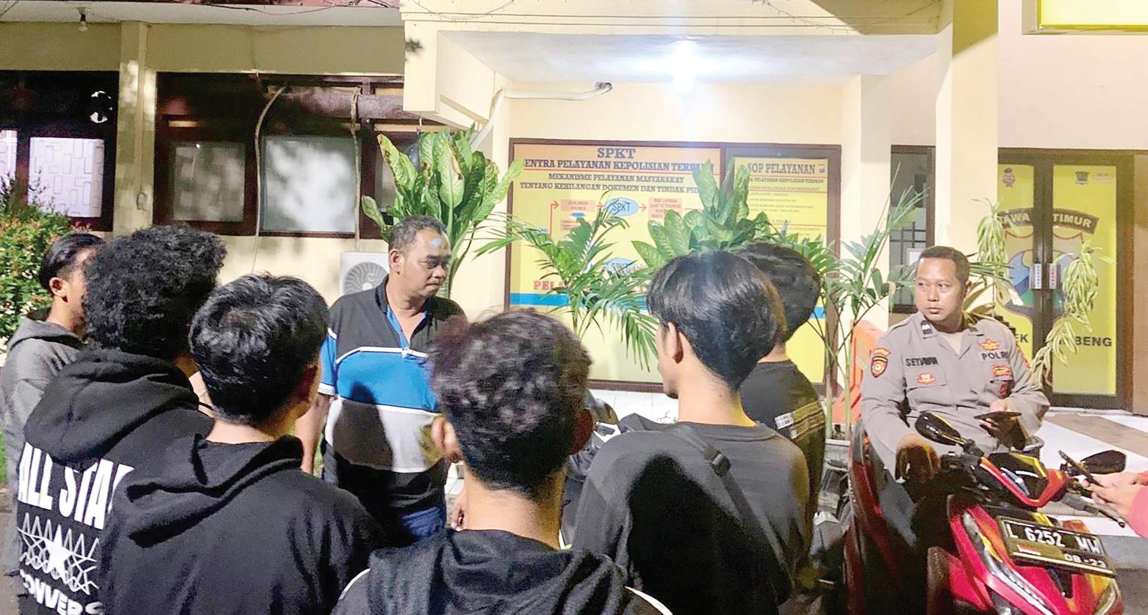 lari berhamburan dan memasuki gang-gang kecil. “Petugas pun melakukan pengejaran di gang-gang kecil wilayah tersebut. Alhasil beberapa remaja berhasil kami amankan dan mendata mereka semua,” kata AKBP Teguh Santoso. Teguh pun mengimbau para re-