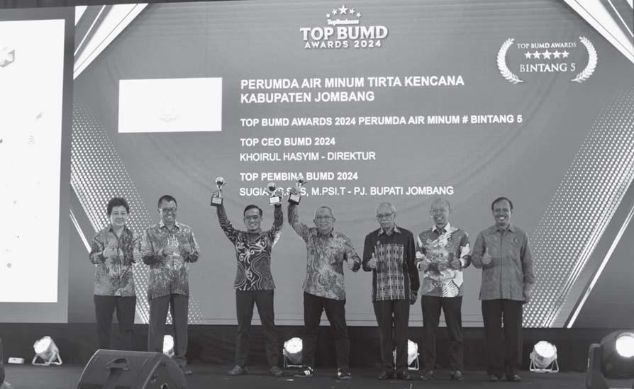 merintahan Daerah, guna mempercepat peningkatan kinerja BUMD, dan pembangunan perekonomian di daerah. Melalui proses panjang penjurian yang ketat dan diakhiri dengan pemaparan kinerja dan program perusahaan, yang melibatkan pakar dan praktisi bisnis, Perumdam Tirta Kencana Jombang akhirnya dapat menjaga prestasi yang telah diraih selama tiga kali berturut-turut sebagai Top BUMD dan TOP CEO. Prestasi berturut ini setidaknya mampu memperkuat kredibilitas dan profesionalitas kerja BUMD Perumda Air Minum Tirta Kenca-