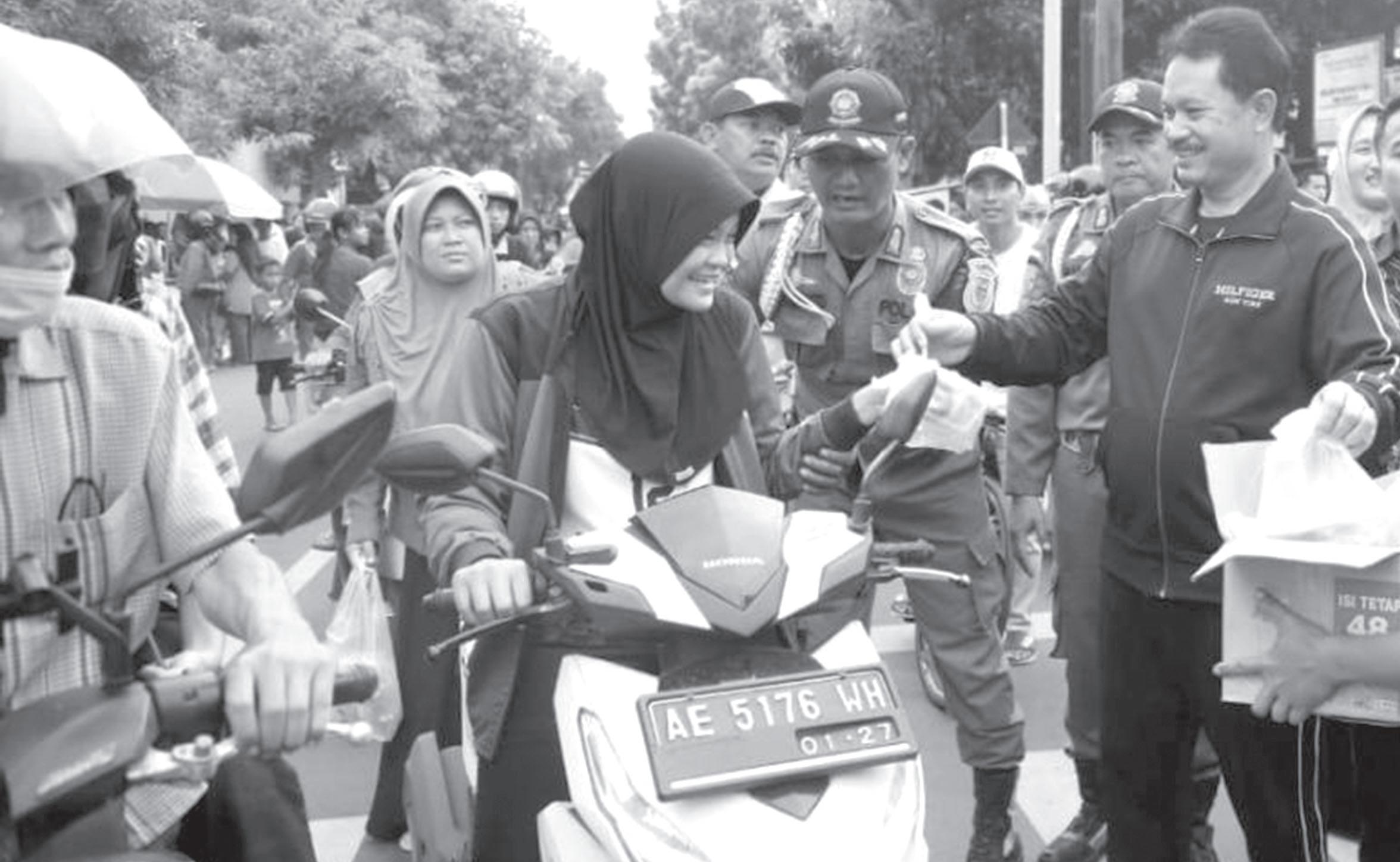 BPBD Jatim, Bhirawa Alhamdulillah hirobbil alamin, itulah kalimat pertama yang diutarakan Ketua DWP BPBD Jatim, Ny Rachmawati Gatot Soebroto. Bukan tanpa sebab, ucapan tersebut merupakan bentuk rasa syukur Ny Rachmawati Gatot Soebroto atas rida Allah Subhanahu Wa Ta’ala yang memberikan kesempatan bagi DWP BPBD Jatim berbagi takjil Ramadan pada sesama. Berbuat baik di bulan suci Ramadan merupakan ladang amal dan pahalanya akan dilipatgandakan. Momentum inilah yang dimaknai Dharma Wanita Persatuan (DWP) BPBD Jatim dengan berbagi 400 paket takjil bagi pengenKetua DWP BPBD Jatim, Ny Rachmawati Gatot Soebroto membagikan takjil bagi para pengguna jalan.
