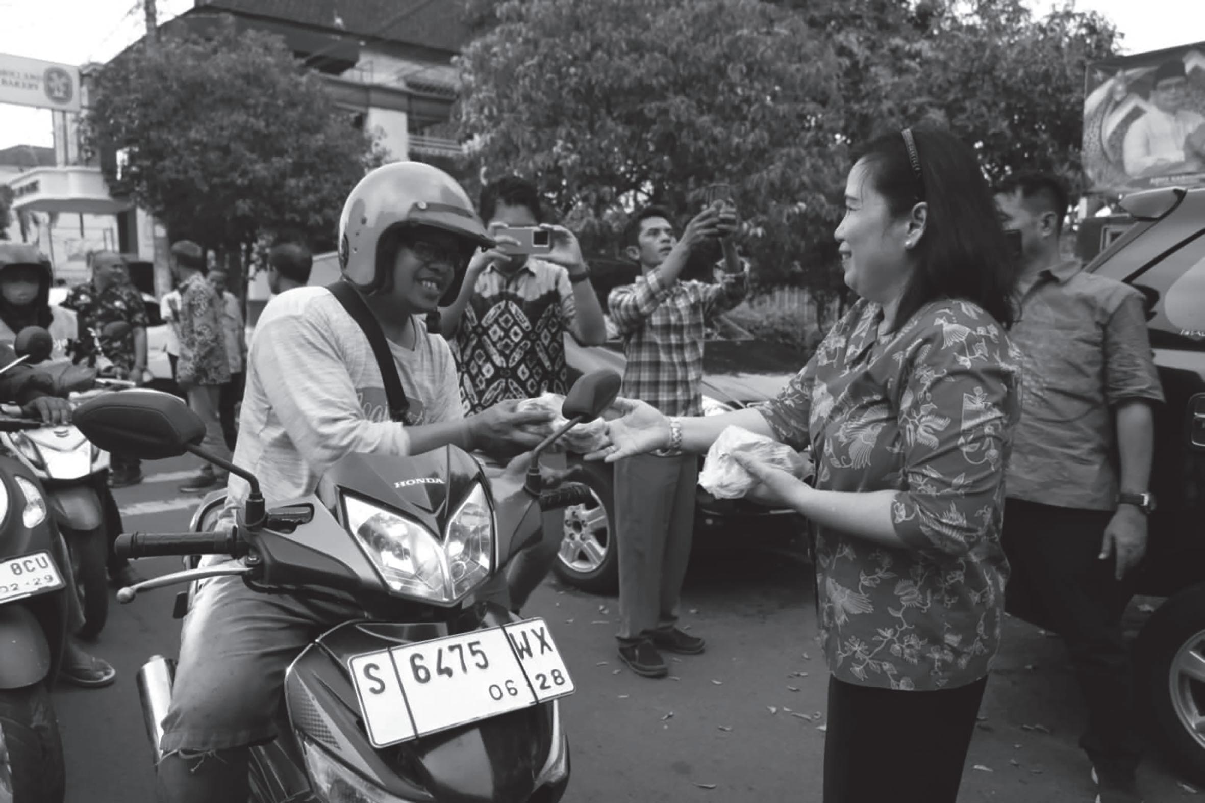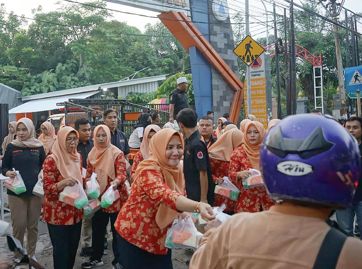 “Alhamdulillah hirobbil alamin atas rida Allah Subhanahu Wa Ta’ala, kami DWP BPBD Jatim ditahun kedua ini bisa mengadakan program bagi-bagi takjil gratis bagi sesama,” ucapnya. Program yang sebenarnya sudah terlaksana oleh para pendahulu. Namun di era kepemimpinan Ny Rachmawati Gatot Soebroto, kegiatan bagi-bagi takjil gratis ini sudah berjalan hingga tahun kedua. “Intinya kita tetap bersyukur sama Allah atas limpahan nikmat dan kesehatan. Sehingga Allah menakdirkan kita berbagi dengan saudara-saudara sesama,” syukurnya. Kegitan bagi-bagi takjil ini diakuinya merupakan kegiatan kepedulian sosial. Karena fungsi dari DWP adalah kolaborasi dan meningkatkan rasa kepedulian sosial antar sesama. Sehingga kegiatan ini salah satu wujud program yang dilakukan DWP BPBD Jatim. Yaitu dengan mengimplementasikan pembagian takjil kepada saudarasaudara kita pengguna jalan yang memang baru pulang dari kantor. Sehingga para penggendara ini memang membutuhkan takjil untuk melepas dahaga selama seharian penuh melakukan ibadah puasa di bulan Ramadan. “Bingkisannya (takjil) berupa roti dan minuman. Uniknya lagi adalah minuman ini produksi kami sendiri. Jadi anggota DWP secara gotong royong meramu minuman yang disajikan kepada pengguna jalan,” ungkapnya. Kegiatan yang diinisiasi DWP BPBD Jatim ini juga melibatkan pegawai dan staf BPBD Jatim. Dengan rangkaian acara pengajian bertemakan “Hikmah Thoharoh Untuk Kesehatan”. Dilanjutkan doa bersama DWP BPBD Jatim dengan pembacaan Yasin Fadillah. Kemudian pembagian dan buka puasa bersama yang dihadiri Kalaksa BPBD Jatim, Gatot Soebroto. “Melalui rangkaian acara ini, DWP BPBD Jatim berharap dapat meningkatkan kepedulian antara sesama. Utamanya menjalin silaturahmi antara seluruh elemen BPBD Jatim, khususnya dimomen bulan suci Ramadan,” tandasnya. [bed]