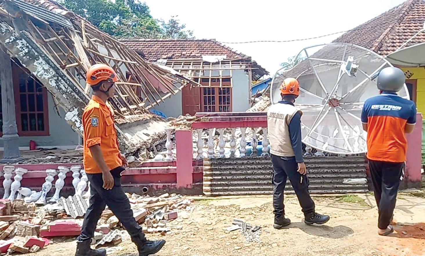 dua rumah, satu musala, dan satu sekolah di Desa Suwari, Kecamatan Sangkapura. Atap dari kedua rumah tersebut tampak rusak akibat gempa, sementara menara musala ada yang runtuh. Sedangkan untuk sekolahan ter-