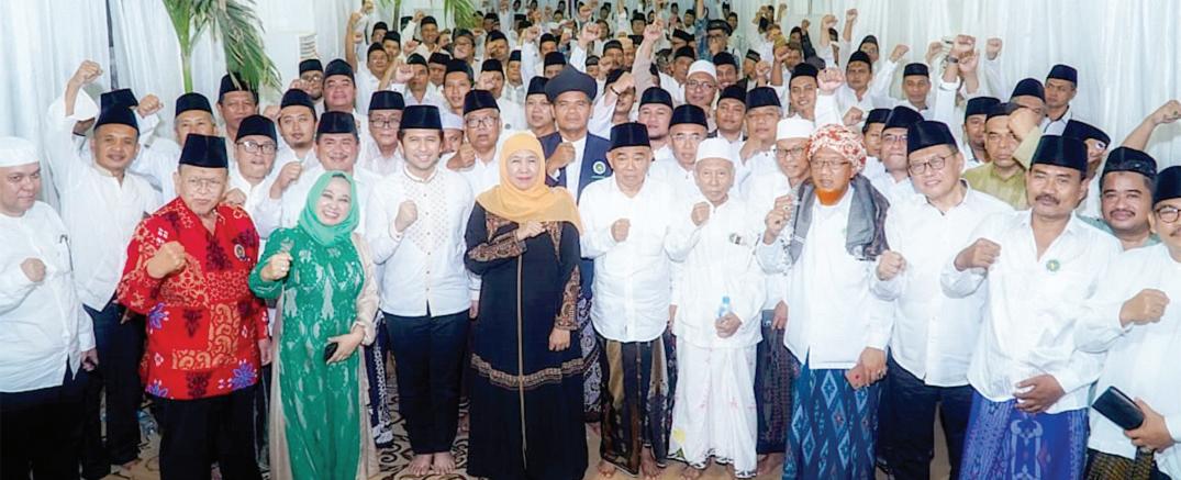 Khofifah Indar Parawansa bersama para kiai dan tokoh agama yang masuk dalam JKSN memberikan dukungan kepada