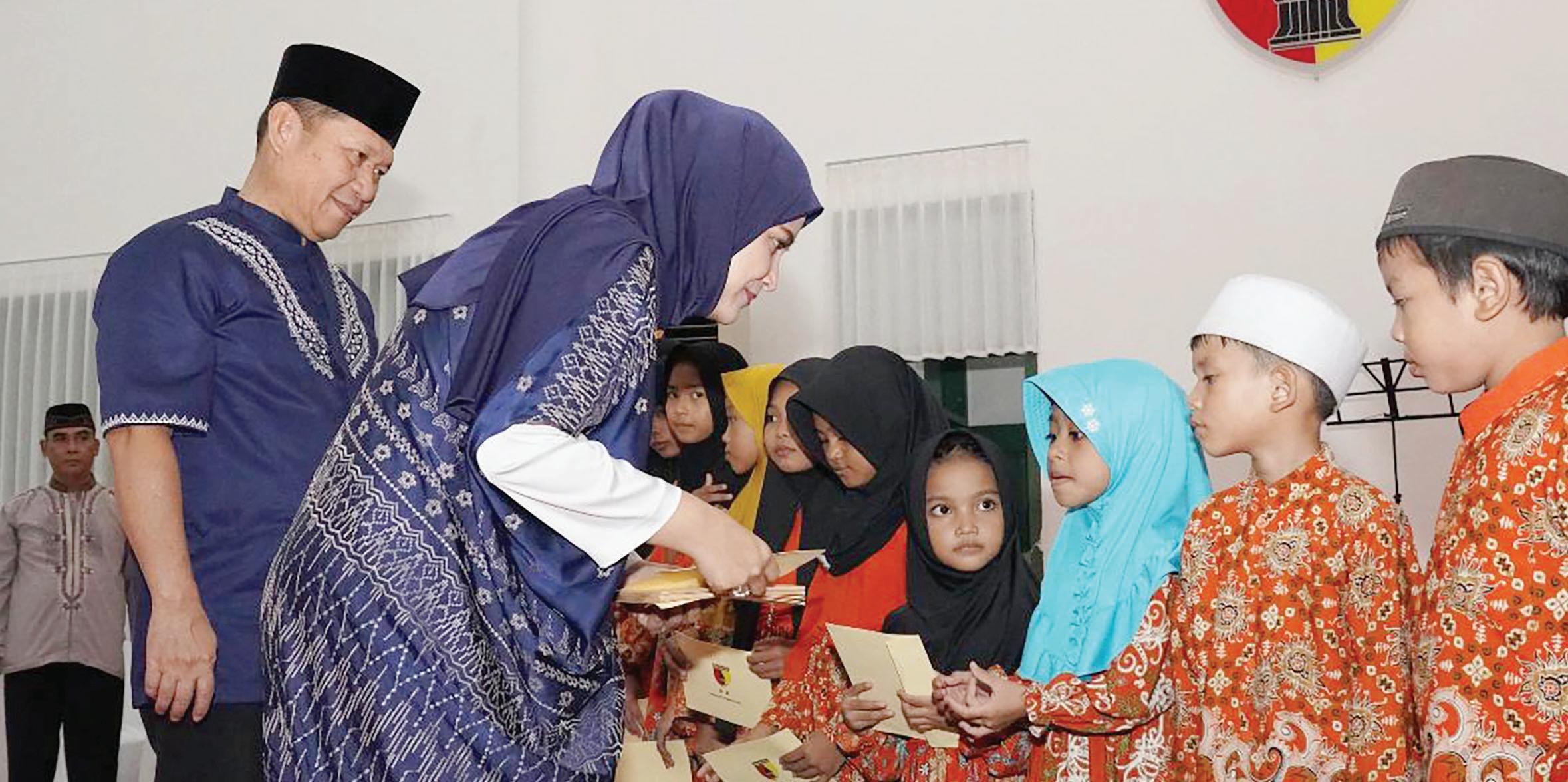 Pangdam V/ Brawijaya, Mayjen TNI Rafael Granada Baay bersama istri memberikan tali asih kepada anak yatim pada acara Safari Ramadan. melaksanakan