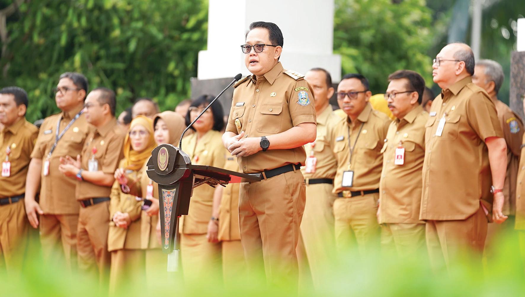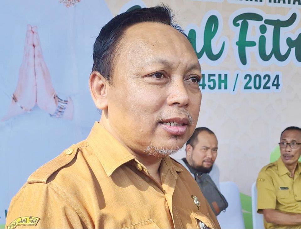Kota Pasuruan, H Adi Wibowo besama jajaran Forkopimda saat berhalal bihalal di Gedung Kesenian Darmoyudo, Kota Pasuruan. alikusyanto/bhirawa Bupati Sidoarjo Batalkan SK Pelantikan 495 Pejabat ke halaman 11 Khofifah Indar Parawansa Pemprov, Bhirawa Penjabat (Pj) Gubernur Jawa Timur Adhy Karyono mengajak ASN di lingkungan Pemprov untuk kembali memaksimalkan layanan kepada masyarakat. Hal itu ditekankannya pada hari pertama ASN kembali bekerja usai libur dan cuti bersama Idul Fitri. "Sebelumnya, atas nama pribadi dan Pemerintah Provinsi Jawa Timur saya mengucapkan mohon maaf lahir dan batin. semoga segala amal ibadah kita di bulan ramadhan tahun ini diterima dan kita bisa dipertemukan kembali dengan ramadan tahun depan. Kini saatnya kita semua kembali bekerja efektif dan produktif," ucapnya saat memimpin apel bersama ASN di halaman Kantor Sekretariat Daerah Provinsi Jatim, Selasa (16/4). Pj Gubernur Jatim Adhy Karyono memberikan arahan saat memimpin apel bersama ASN di halaman Kantor Sekretariat Daerah Provinsi Jatim. Kembali Bekerja, Pj Gubernur Ajak ASN Maksimalkan Layanan Pergerakan 31,2 Juta Pemudik Terkendali ke halaman 11 Budi Basuki dr Kasil Rokhmad