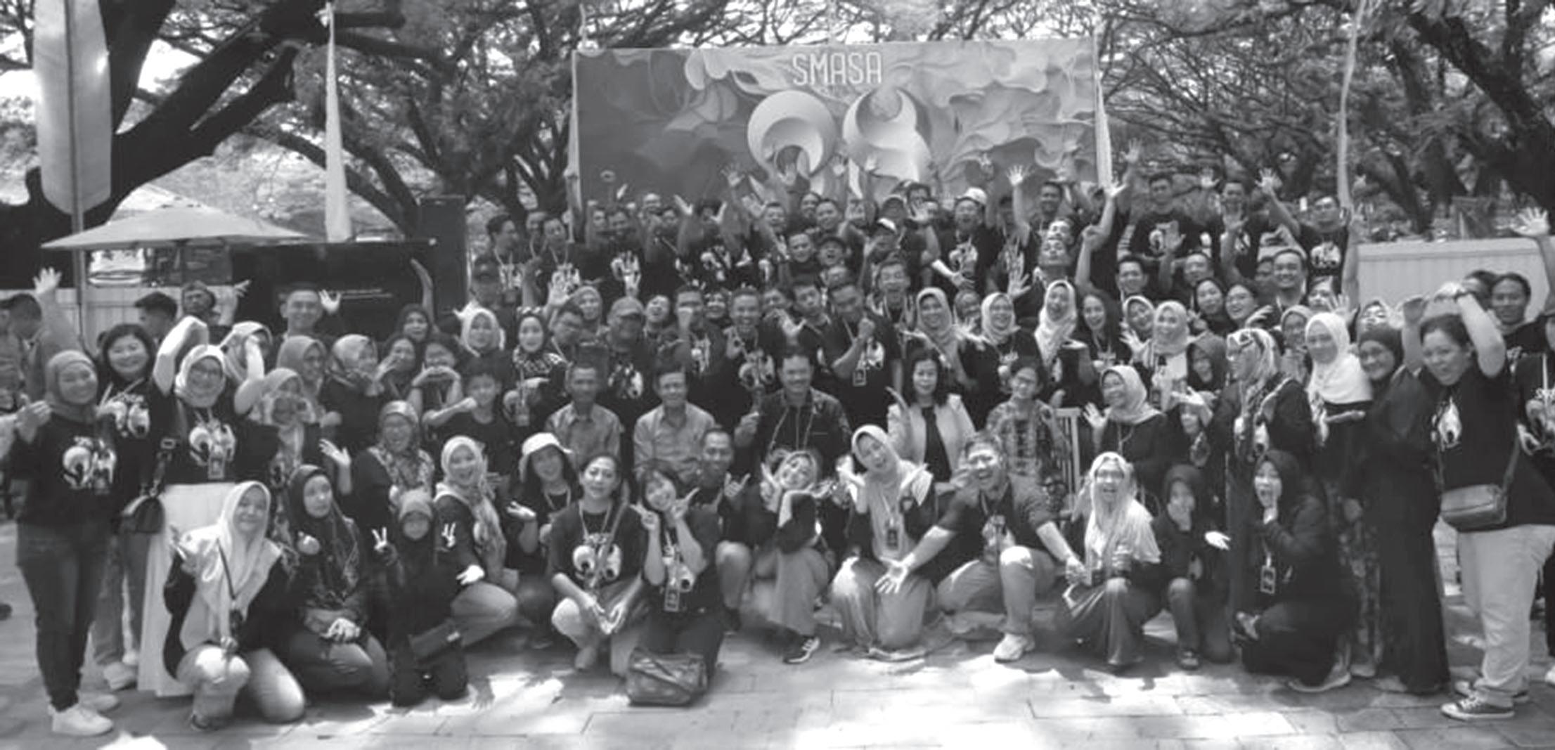 menggelar halal bihalal di halaman Taman Surya.