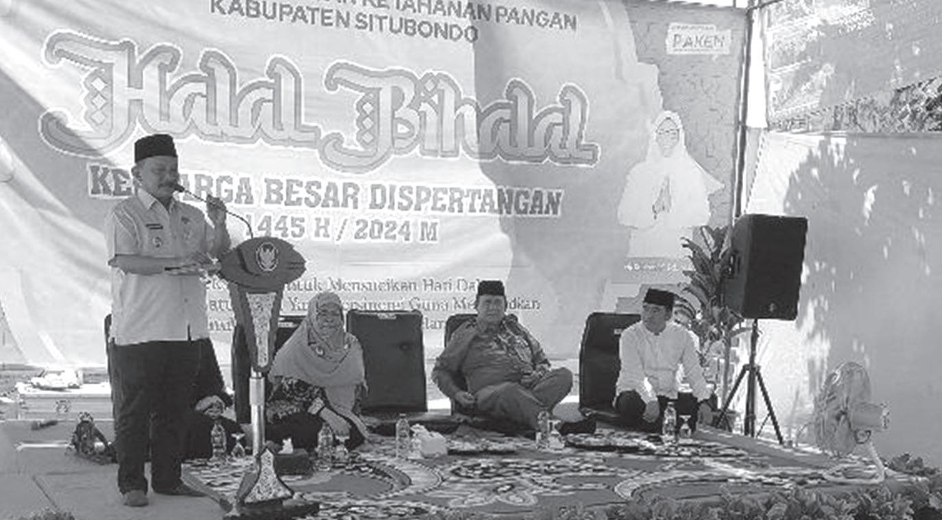 Situbondo, Bhirawa Dinas Pertanian dan Ketahanan Pangan (Dispertangan) Kabupaten Situbondo menggelar kegiatan halal bihalal, Jumat (19/4). Kegiatan halal bihalal yang digelar keluarga besar Dispertangan Kabupaten Situbondo, dihadiri langsung Bupati Karna Suswandi, Wabup Nyai Hj Khoirani bersama Sekda Wawan Setiawan, di halaman belakang Dispertangan. "Alhamdulillah di MT II ini ada puluhan hektare padi BK yang siap dipanen," ujar Kepala Dispertangan Kabupaten Situbondo, Dadang Aries Bintoro. Saat ini, papar Dadang, ada puluhan hektare padi BK mulai tersebar di beberapa wilayah di Kota Santri Pancasila Situbondo. Misalnya saja, sebut mantan Sekcam Panarukan itu, di Desa Kalibagor ada 10 hektare dipanen bulan April ini. "Selanjutnya ada di Kecamatan Kapongan 10 hektare yang siap panen bulan Mei serta di Desa Ketowan ada 15 hektare yang siap panen bulan Juli," tutur Dadang.