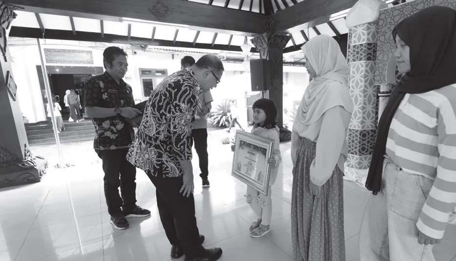 Kota Batu, Bhirawa Sebanyak 31 anak dan remaja berprestasi mendapatkan penghargaan dari Penjabat (Pj) Wali Kota Batu, Aries Agung Paewai. Mereka adalah para pemenang Kota Wisata Batu Ramadan Fest (KWBRF) 2024 dan Kejurkot Bulutangkis Kota Batu 2023. Adapun pemberian penghargaan dilakasnakan di Pendopo Rumah Dinas Wali Kota, Jumat (19/4/2024). Pemberiaan penghargaan yang juga disertai denga uang pembinaan ini sebagai bentuk apresiasi Pj Wali Kota Batu kepada generasi muda berprestasi KWB. “Dengan diberikannya penghargaan dan uang pembinaan ini kita berharap akan semakin banyak generasi mudak Kota Wisata Batu yang bisa mengukir prestasi,” ujar Aries AP. Dari 31 remaja berprestasi ini, sebanyak 13 orang adalah pemanang dari Kejurkot Bulutangkis 2023, dan 18 pemenang KWBRF. Dan khusus dari KWBRF ini para pemanang terdiri dari kategori kaligrafi, fashion show, dai cilik, tartil Quran, dan banjari. Kepada para generasi muda ber-