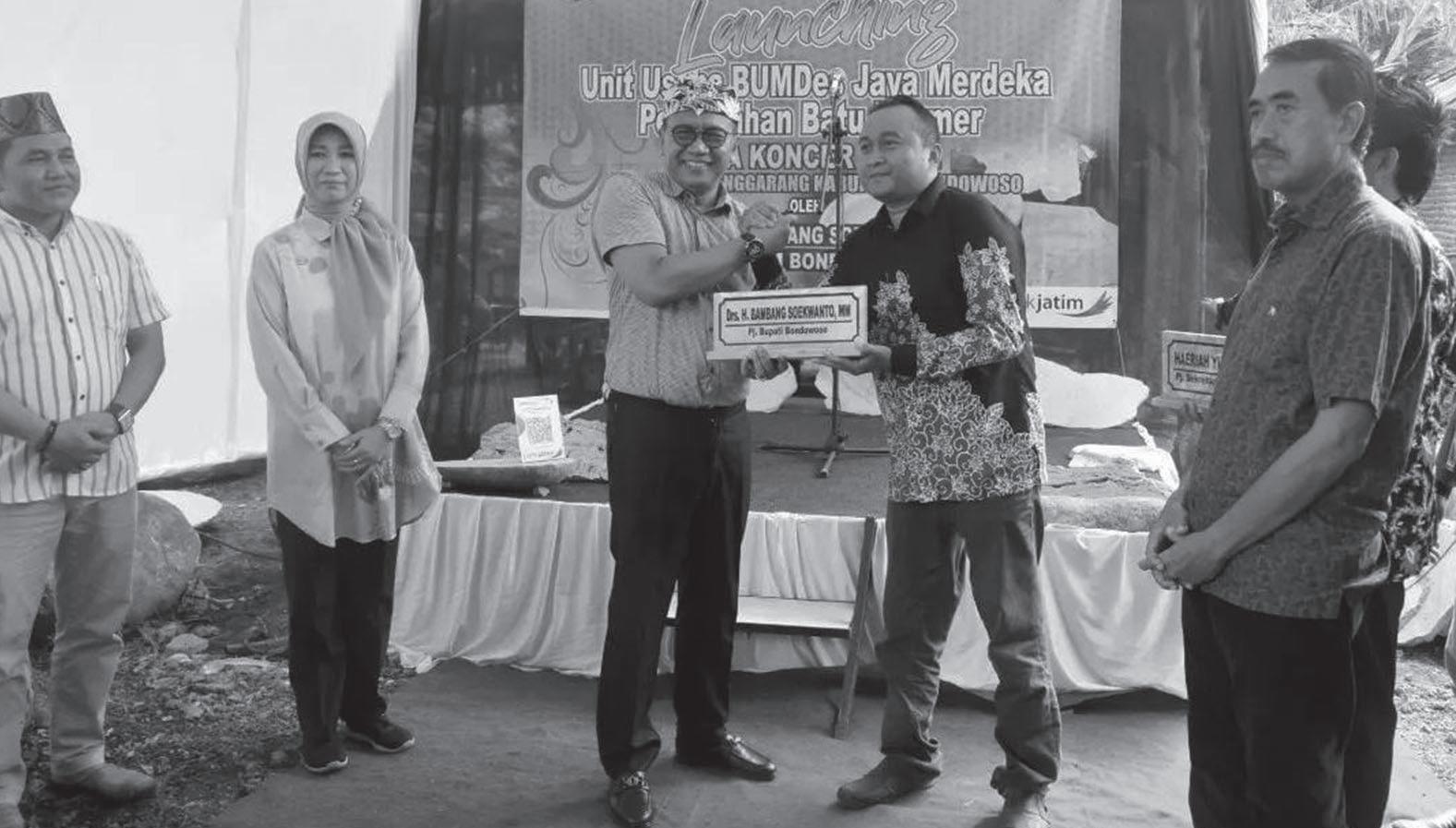 Bupati Bondowoso Bambang Soekwanto didampingi Pj Sekda melaunching Unit Usaha Bumdes Jaya Merdeka, Desa Koncer Kidul, Kecamatan Tenggarang tersebut, Jum'at (19/4). Akan hadirnya usaha marmer itu, Pj Bupati Bondowoso sangat antusias dan mengapresiasi kepada semua pihak yang ikut berperan serta dalam mewujudkan usaha Bumdes berupa batu marmer. Pihaknya juga berkomitmen akan terus mendukung dan memfasilitasi usaha-usaha lokal yang ada di Bondowoso agar terus berkembang dan berkelanjutan. "Kami berkomitmen untuk terus mendukung dan memfasilitasi pengembangan usaha-usaha lokal yang berkelanjutan dan inklusif,"katanya. Bambang Soekwanto meminta agar