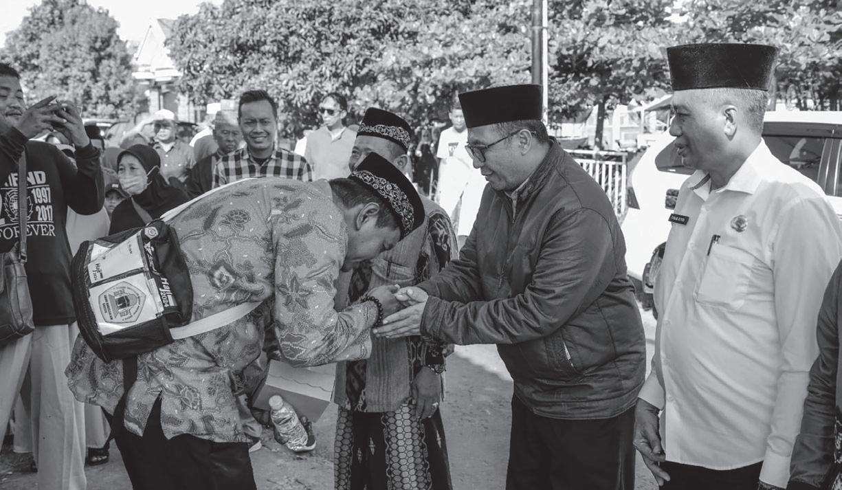 “Selain itu, perlu diperhatikan adalah ketaatan saat menjalankan ibadah. Cari ibadah yang tidak melanggar, karena aturan disana berbeda dengan di Indonesia,” ungkapnya. Demi kelancaran menjalankan ibadah haji, pihaknya mengimbau kepada para calon jamaah agar selalu menjaga kesehatan serta mengikuti segala arahan dari para petugas haji. [eri.gat] kerin Ikanto/bhirawa Sekda Gresik saat melepas jamaah calon haji asal Bawean.