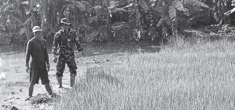 sawah membantu para petani dalam proses mencabut bibit padi yang siap tanam. Nantinya akan ditanam ke lahan sawah yang sudah di bajak sebelumnya,” jelasnya. Ditambahkannya, kegiatan ini merupakan wujud dukungan sekaligus kepedulian Babinsa terhadap warga binaan.