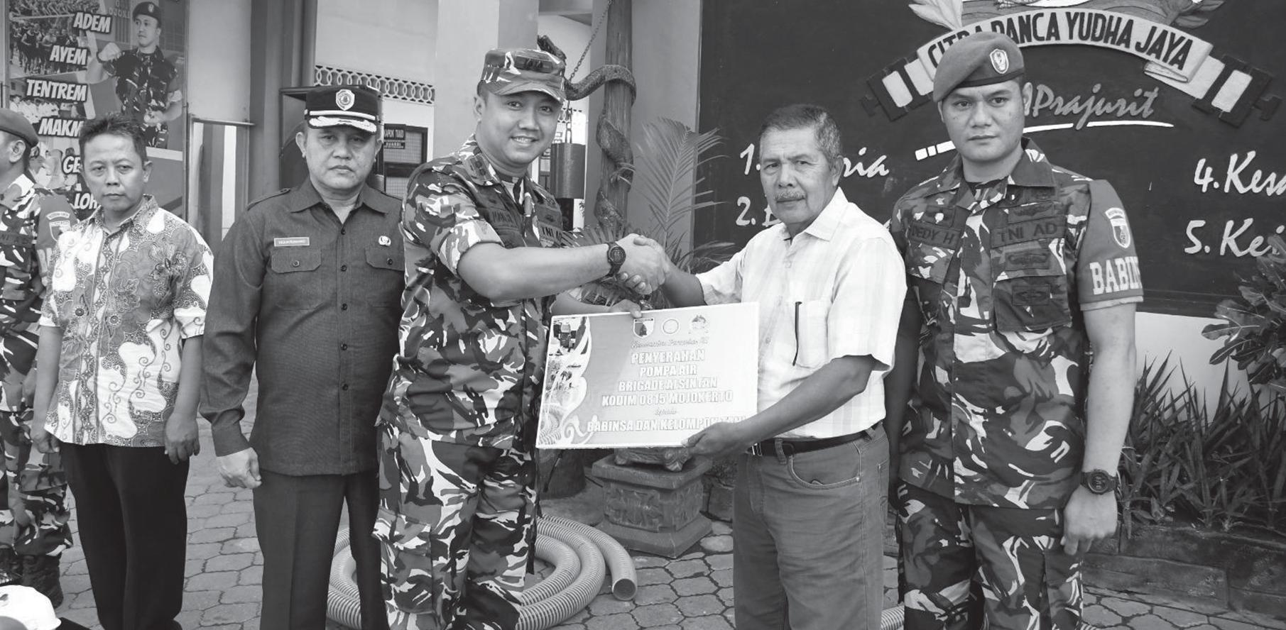 erahkan dua unit pompa air kepada perwakilan Poktan dan Babinsa kemudian dilanjutkan pemberangkatan secara tersebar di seluruh titik sumber air wilayah Mojokerto Raya.