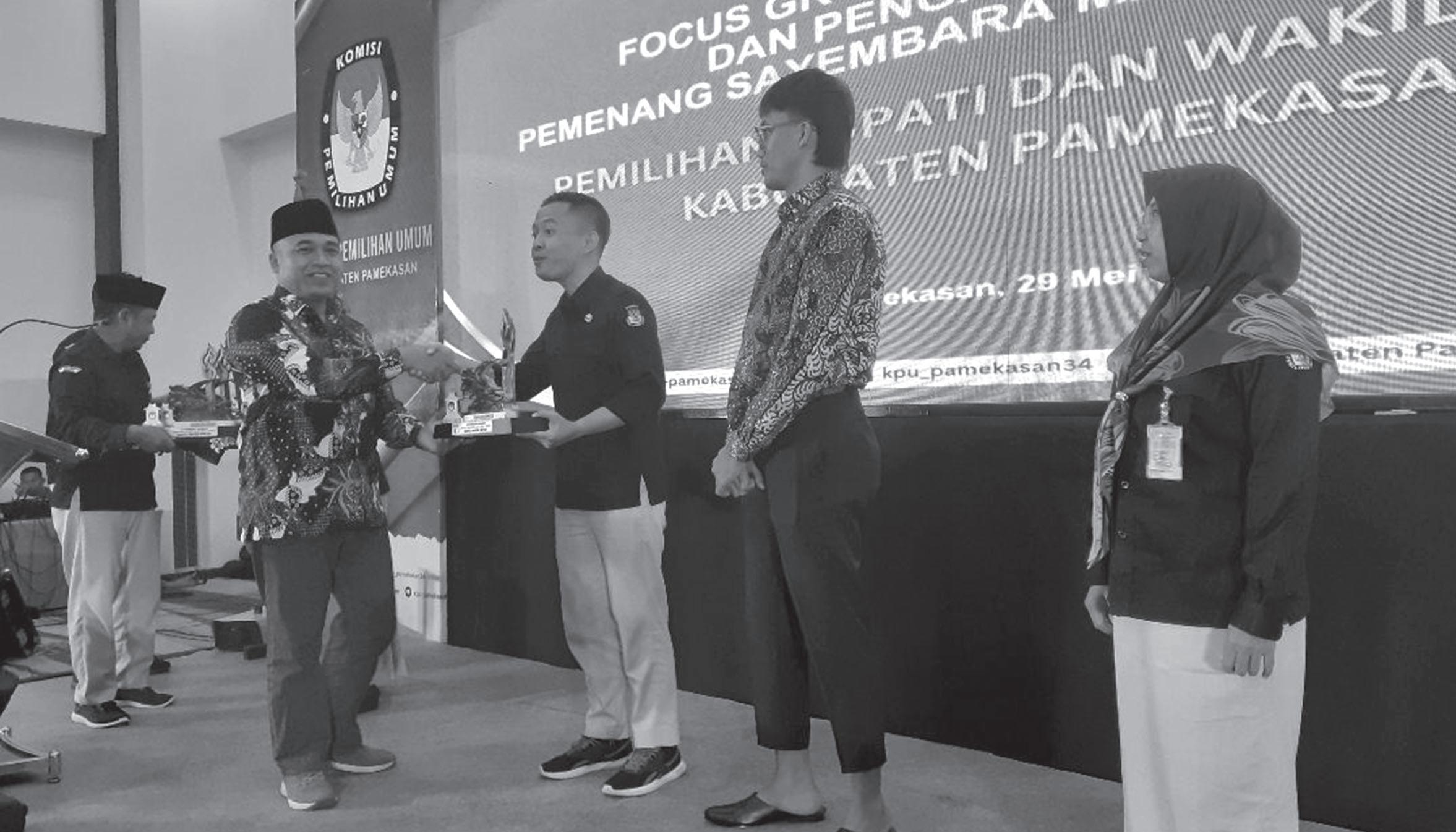 an Juri, serta enam peserta masuk nominasi lomba cipta Maskot dan Jingle Pilkada Pamekasan 2024. Untuk lomba cipta Mascot, juara pertama diraih Agung Aris Setiawan bertema “Si Pisan”, juara kedua dan ketiga, Naufan Noordyanto, bertema “Si Getak” dan Azizah Nur Azimah, bertema “Papi dan Pipa” Adapun lomba cipta Jingle, dimenangkan Nurul Hidayat dengan judul “Menuju Pamekasan Bersahabat”. Untuk juara kedua dan ketiga, Moh Zainal dengan judul “Sukseskan Pilkada Pamekasan”, dan Ferdian Happy Afindi, judul jingle “Pamekasan Bersahabat”. “Malam ini, saya sebagai Ket-