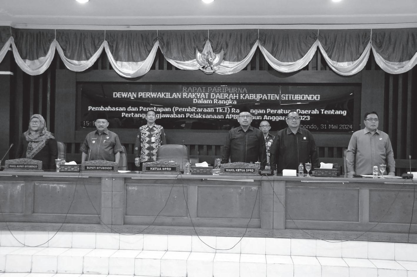 Kota Madiun, Bhirawa Rapat Paripurna DPRD Kota Madiun dengan agenda Penyampaian Jawaban Wali Kota Madiun atas Pemandangan Umum (PU) Fraksi-fraksi DPRD Kota Madiun terhadap Raperda tentang Laporan Pertanggungjawaban (LPJ) APBD Tahun Anggaran 2023 di Gedung Paripurna DPRD Kota Madiun, Jumat (31/5) siang. Pj. Wali Kota Madiun, Eddy Supriyanto, dalam paparannya menyampaikan bahwa Jawaban atas Pemandangan Umum Fraksi-fraksi DPRD Kota Ma-