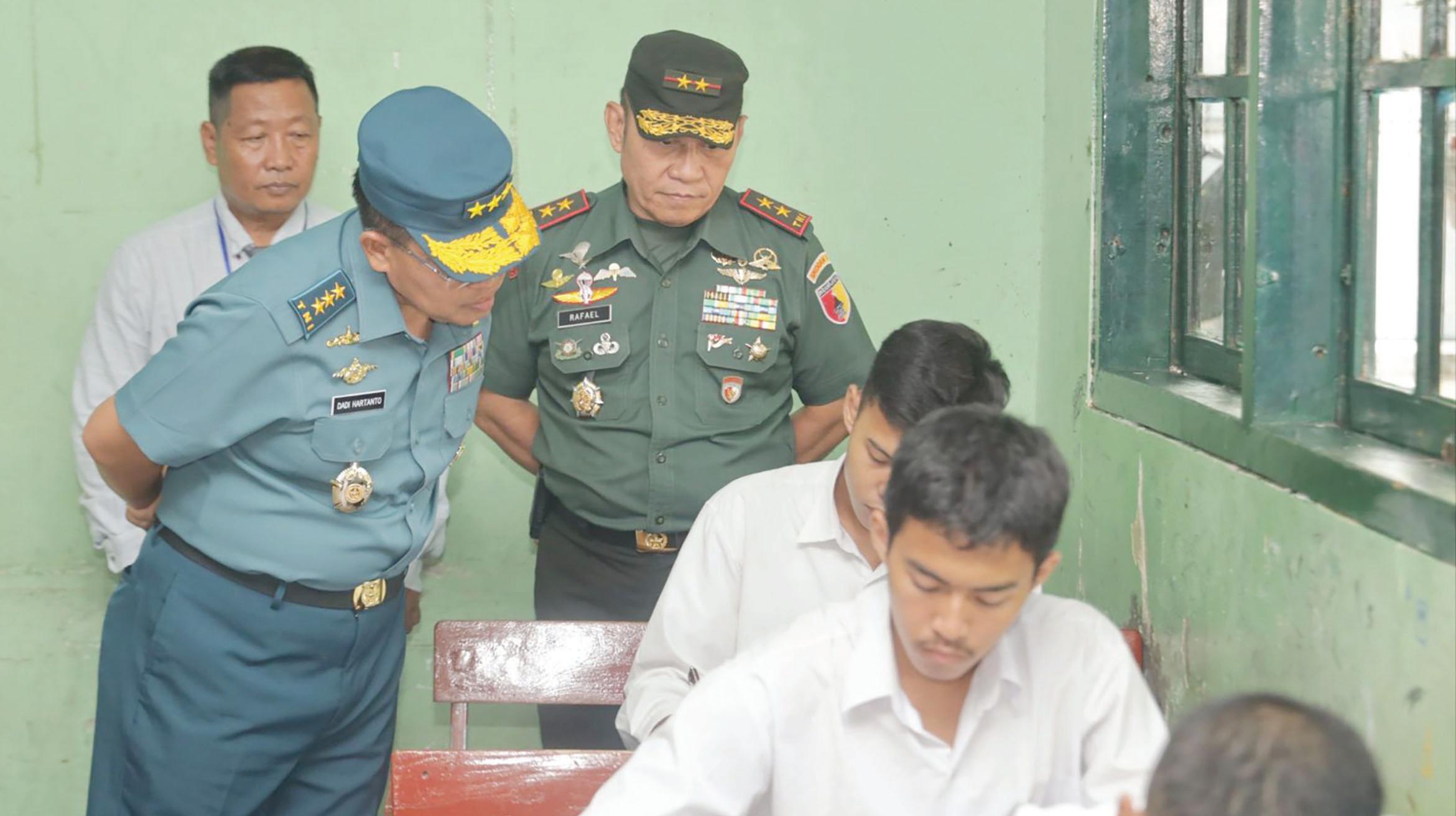 Irjen Mabes TNI, Laksdya TNI Dadi Hartono dan Pangdam V/Brawijaya, Mayjen TNI Rafael Granada Baay meninjau pelaksanaan seleksi calon Taruna (Catar) Akademi TNI. Peninjauan Catar yang berlangsung di Surabaya, Minggu (2/6) ini guna memastikan proses pelaksanaannya berjalan lancar dan sesuai prosedur.