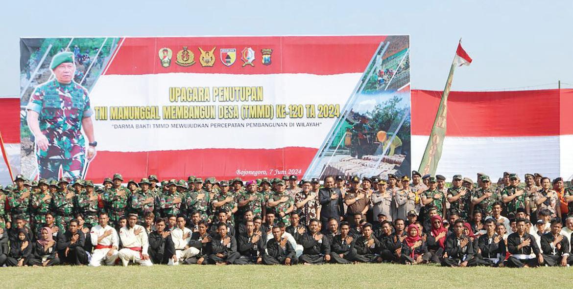 Turut hadir pula Forkopimda, Asda, OPD Terkait dan Forkopimcam Tambakrejo. Kegiatan tersebut di tutup langsung oleh Pangdam V Brawijaya dengan tema “Darma Bakti TMMD Mewujudkan Percepatan Pembangunan di Wilayah” Dalam sambutannya, Pangdam V Brawijaya selaku Penanggung Jawab Keberhasilan Operasional TMMD, mengucapkan terima kasih dan apresiasi yang setinggi tingginya kepada pemerintah daerah, seluruh prajurit dan elemen masyarakat serta semua pihak yang telah membantu baik secara moril maupun materiil, sehingga kegiatan ini dapat berjalan dengan lancar, aman dan sukses. Usai acara Pj Bupati Adriyanto, menyampaikan Kita akan terus berupaya bersama-sama menangani masalah kemiskinan dan masalah pengaturan air di wilayah Bojonegoro, karena itu adalah PR (pekerjaan rumah) besar kita bersama-sama yang tentunya tidak bisa di tangani sendiri oleh Pemkab,