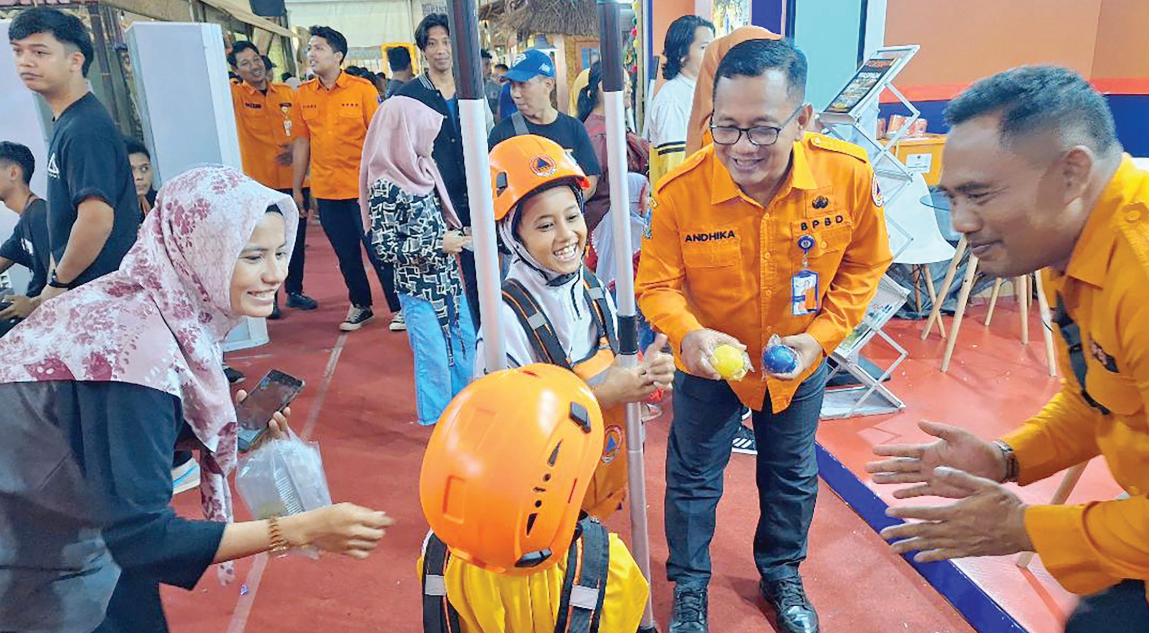 Dijelaskannya, dalam stand ini para pengunjung juga diajari menggunakan alat evakuasi yang digunakan saat terjadi bencana. Dicontohkannya seperti peralatan evakuasi yang digunakan saat terjadi bencana banjir. Yakni seperti