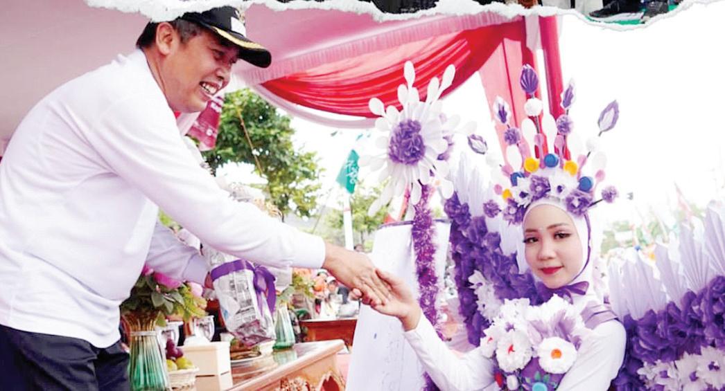 pendidikan SD/MI, SMP/MTs, SMA/MA, hingga umum. Tampak peserta fashion show daur ulang seperti sampah plastik, daun dan