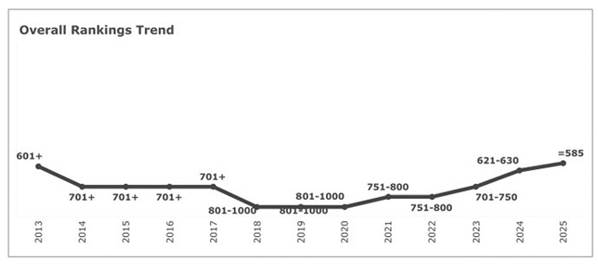 ke peringkat 585 dari peringkat sebelumnya di posisi 600 besar. Rektor Unair, Prof Dr Mohammad Nasih SE MT Ak mengatakan peningkatan UNAIR yang dapat mencapai
