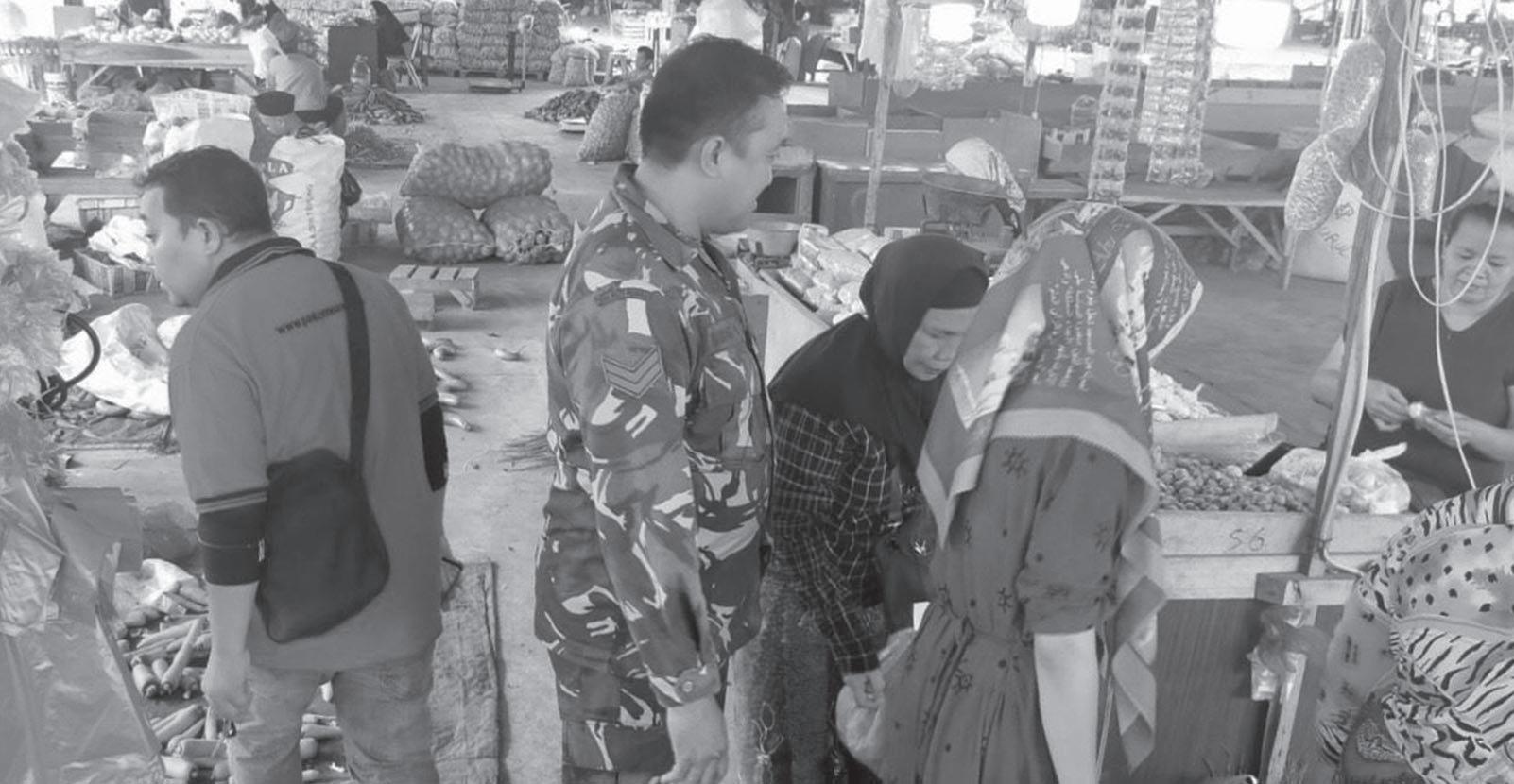 Surabaya, Bhirawa Babinsa jajaran Kodim 0830/Surabaya Utara terus melakukan pemantauan harga sembako di pasar tradisional. Seperti yang dilakukan Koptu Bambang, Babinsa Koramil 0830/02 Semampir melakukan pemantauan harga sembako di Pasar Induk Sidotopo, Surabaya, Minggu (9/6). "Kegiatan ini dilakukan untuk memonitor perkembangan harga Sembako di pasar maupun kios sembako. Apalagi sebentar lagi akan memasuki Hari Raya Idul Adha 1445 H," kata Koptu Bambang. Dijelaskannya, pemantauan ini selain mengecen harga sembako, juga meningkatkan jalinan komunikasi sosial (Komsos) dengan pedagang pasar di wilayah binaannya. Selain itu juga sebagai pemantauan situasi dan kondisi keamanan di wilayah binaan.