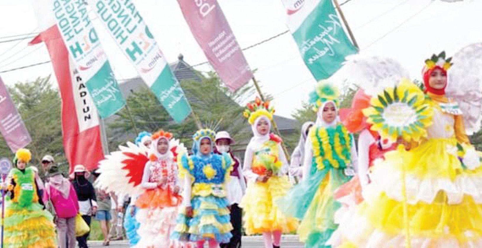 bernilai ekonomi, “kata Pj. Bupati Madiun Ir. Tontro Pahlawanto. Berbagai jenis karya disajikan peserta yang memanfaatkan bahang-bahan daur ulang. Peserta juga berjalan sepanjang 2 kilometer dari depan halaman Pendopo