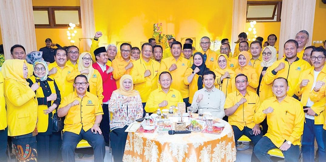 jungi kantor DPD Golkar Jatim, Sabtu (8/6). Di hadapan kader Partai Golkar Jatim, Khofifah mengapresiasi dukungan tulus dari Partai Golkar. Ia mengaku tidak mengeluar-