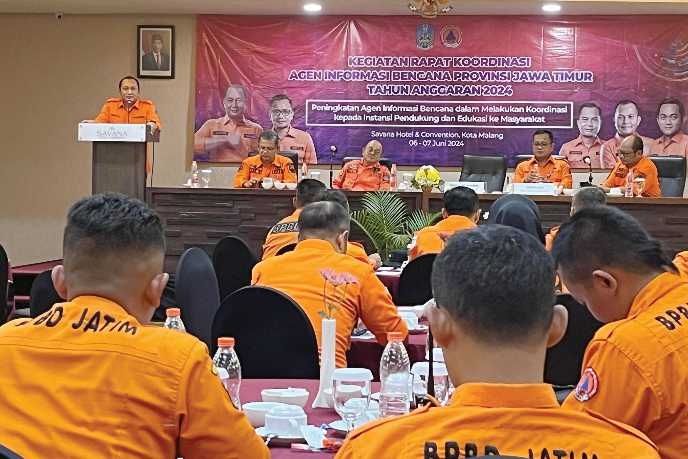 BPBD Jatim menggelar rapat koordinasi (rakor) peningkatan kapasitas agen informasi bencana (Agisena) Kabupaten/Kota se-Jatim. Rakor selama dua hari, yakni Kamis (6/6) hingga Jumat (7/6) di Kota Malang ini memfokuskan pada peningkatan Agisena dalam melakukan koordinasi penanganan bencana kepada instansi terkait.