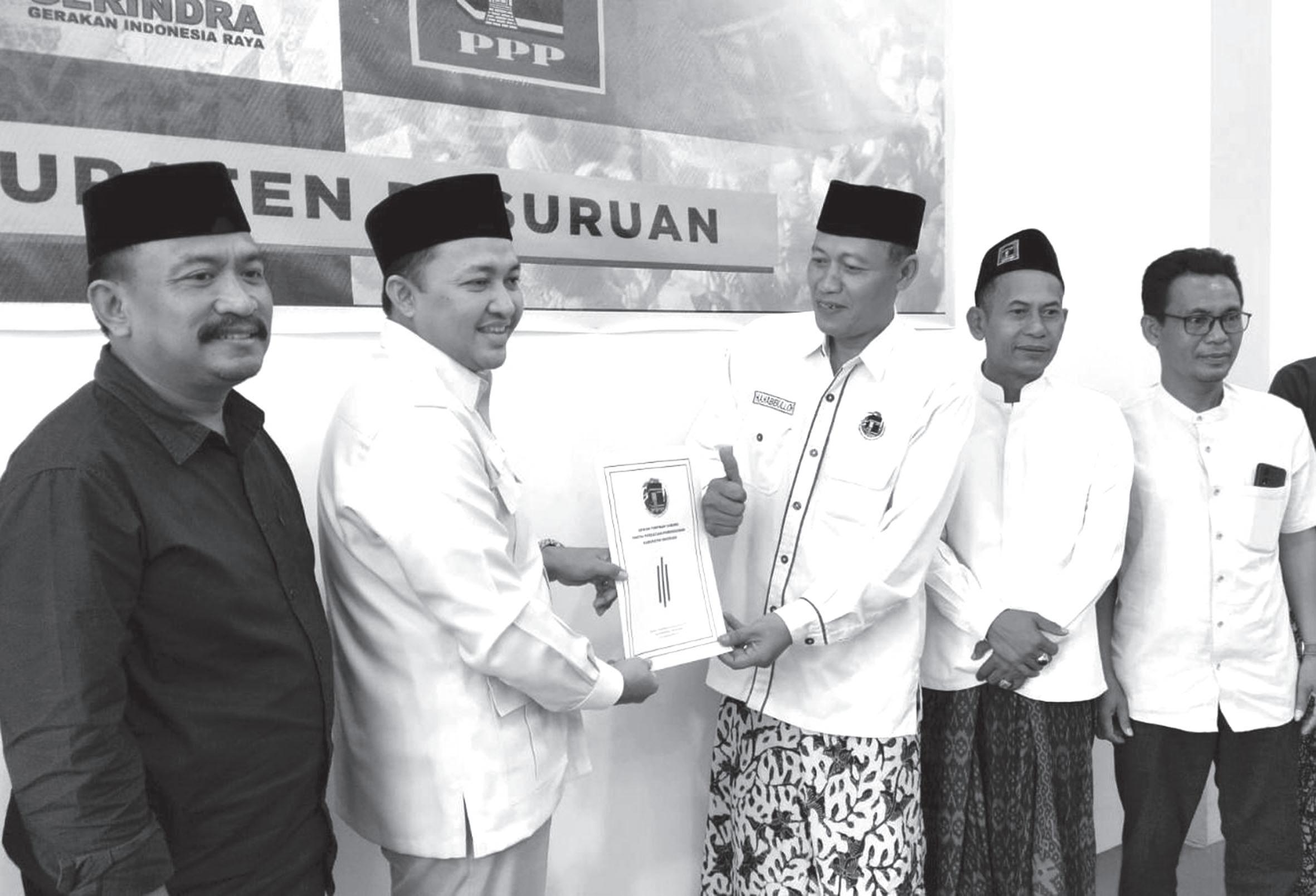 Pasuruan, Bhirawa DPC Partai Persatuan Pembangunan (PPP) Kabupaten Pasuruan bersama panitia desk pilkada mendatangi kantor DPC Gerindra Kabupaten Pasuruan di Kecamatan Bangil. Kedatangan, sebagai tindak lanjut pendaftaran bakal calon Bupati dan Wakil Bupati Pasuruan di Pilkada mendatang.