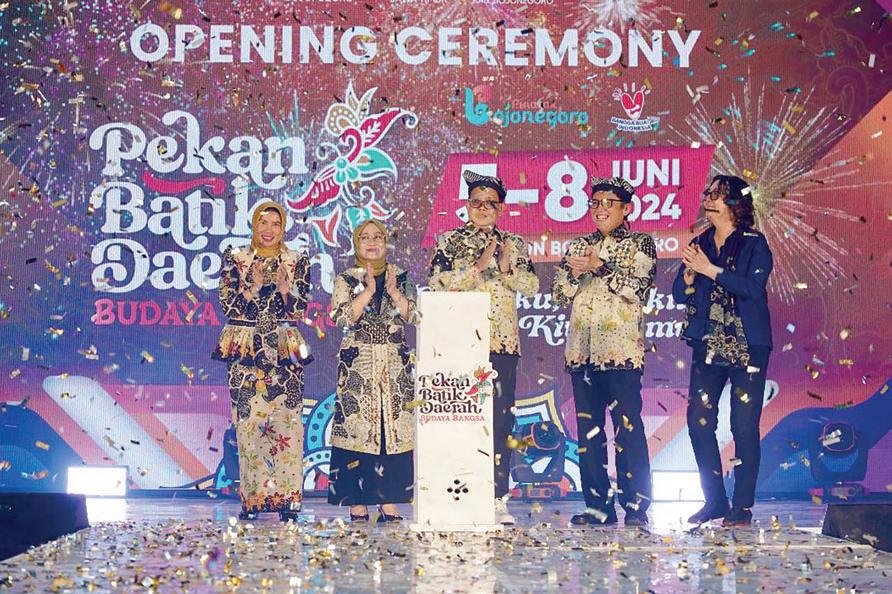 Opening Ceremony Pekan Batik Daerah Budaya Bangsa yang di gelar oleh Pemkab Bojonegoro di buka langsung oleh Pj Gubernur Jawa Timur, Adi Karyono, Rabu (5/6) di Alun Alun Bojonegoro. Kegiatan pertama kalinya di Kabupaten Bojonegoro tersebut mengusung tema “Batikku Batikmu, Batik kita Semua” yang akan berlangsung selama 4 hari, mulai tanggal 5 sampai dengan 8 Juni 2024.