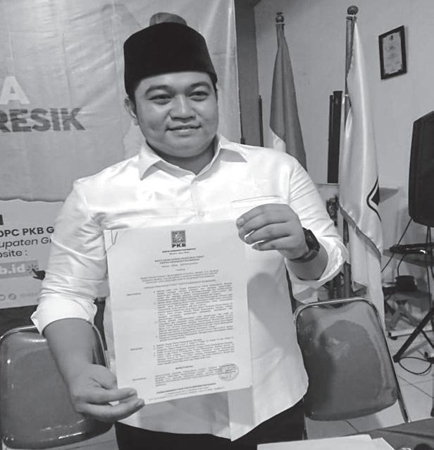 Gresik pada Pilkada 2024 mendatang. Hal ini sesuai surat tugas dari DPP PKB yang dibacakan pada rapat penetapan calon bupati di Kantor DPC Partai PKB Gresik Jalan Kartini, Kecamatan Kebomas, Gresik, Rabu (12/6). Pembacaan surat keputusan ini dibacakan oleh Fauzan Fuadi, Bendahara DPW PKB mewakili ketua DPW Jatim disaksikan oleh Ketua DPC PKB Gresik, Abdul Qodir, sekretaris, dan seluruh kader partai PKB Gresik. Keputusan resmi berdasarkan SK nomor 30114/DPP/01/VI/2024, DPP
