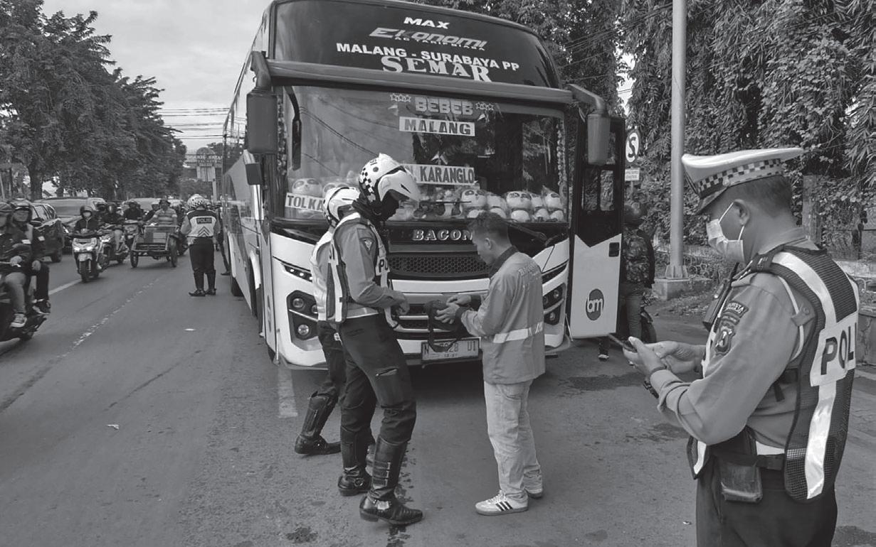 perundang-undangan yang berlaku. “Termasuk juga akan memanggil pihak pengelola bus untuk proses ganti rugi atas kerusakan yang terjadi,” imbuh Cahyo Widiantoro. Diketahui, Bus Jawa Indah Transindo menabrak pemotor, kemudian menghantam pos jalur perlintasan langsung (JPL) di Jalur Pantura Pasuruan-Probolinggo, tepatnya di Dusun Mangkrengan, Desa Sumberagung, Kecamatan Grati, Kabupaten Pasuruan. Kondisi pemotor mengalami luka hingga akhirnya dilarikan ke rumah sakit. Kecelakaan bermula saat bus nopol P 7041 UL yang dikemudikan Subagio (61) melaju dari arah barat ke timur atau arah Surabaya ke Probolinggo, pukul 09.30. Saat akan melawati rel, bus tiba-tiba oleng ke kanan dan menabrak pemotor bernopol W 2188 YL yang dikendarai Samsul Muarip (58). Pemotor itu melaju dari arah sebaliknya. Usai menabrak pemotor, bus kemudian menabrak Pos JPL 150. Akibat kecelakaan tersebut, kondisi motor mengalami kerusakan berat. Pos JPL dan bagian depan bus juga rusak parah. “Saat itu kondisi bus oleng, lalu