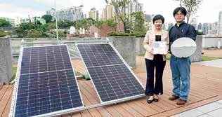 大呂琳教授、龔權博士及團隊,開發 了以「碳量子點」(Carbon Dots) 驅動的光致發光輻射製冷納米塗層, 將紫外線轉換成可見光光子,提升太 陽能反射率。此技術預計每年可節省 約 10% 空調耗電量。