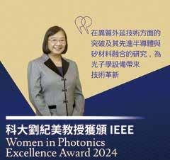 劉紀美教授榮獲 IEEE 的 2024 年度傑出光子學 女性學者獎(Women in Photonics Excellence Award 2024)。IEEE 讚揚她在異質外延技術方面 的突破及其先進半導體與矽材料融合研究為光子學 設備帶來了技術革新。
