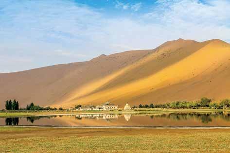 巴丹吉林沙漠中的蘇木吉林湖以及湖邊建於1755年的古廟。該照片獲2017年國際水文地質協 會攝影一等獎。(拍攝者:焦赳赳教授)