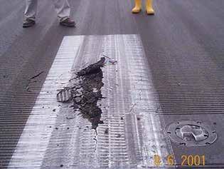 大嶼山機場跑道受潮汐影響導致土層中空氣高壓和引起的拱 起、破壞。(圖源:香港機場管理局)