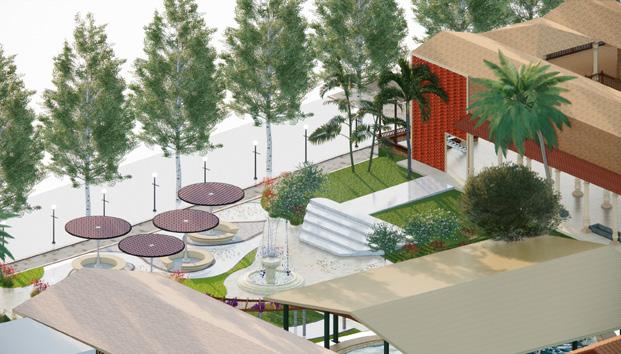 “THIS RESORT DESIGN EMBODIES A SEAMLESS FUSION OF MODERN LUXURY AND VERNACULAR CHARM. IT FEATURES A PICTURESQUE WEDDING VENUE AMIDST LUSH LANDSCAPES, COMPLEMENTED BY COZY SEATING AREAS FOR RELAXATION. A SPARKLING SWIMMING POOL OFFERS A REFRESHING RETREAT, WHILE CULINARY EXCELLENCE IS SHOWCASED IN THE COMMERCIAL AND LIVE KITCHENS ALONG WITH THE DINING AREA. THE RESORT IS ADORNED WITHVERNACULAR DESIGN ELEMENTS SUCH AS WOOD AND STABILIZED MUD BLOCKS, EXCLUDES WARMTH AUTHENTICITY. DDING A UNIQUE TOUCH, A CAPTIVATING BIG FISH TANK SERVES AS A FOCAL POINT, ENRICHING THE GUEST EXPERIENCE. EACH SPACE WITHIN THE RESORT IS THOUGHTFULLY DESIGNED TO HARMONIZE WITH THE NATURAL SURROUNDINGS, CREATING AN INVITING OASIS FOR UNFORGETTABLE WEDDINGS AND LEISURE ESCAPES.”