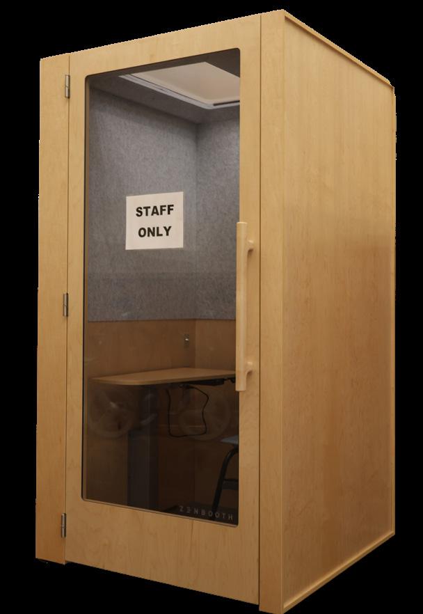 In response to concerns about limited teacher workspace, a Zen Booth cubicle was installed in the F building on Nov. 20. Assistant Principal Aimee Malcolm said an order of three or four cubicles had been discussed near the beginning of the 2025-26 school year, but the district ultimately funded one.