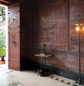 EN Villa Kérylos is still furnished as it was when it was first built. From furniture to cutlery, from frescoes to door and window frames, each aspect bears countless references to Antiquity. Geometric, plant or figure-based motifs even cover objects typical of the dawn of the twentieth century, as if they were the handiwork of ancient Greek craftspeople. One of the best illustrations of this is the remarkable piano hidden in a piece of furniture in the small lounge.