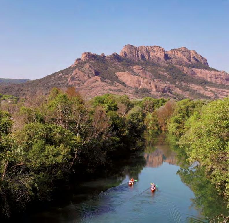 Naviguez paisiblement au pied du Rocher jusqu’au lac sauvage du Noirel baigné de soleil. A canoe experience alongside the famous red rocky mountain of Roquebrune, arriving at a natural lake bathed in sunshine. 2
