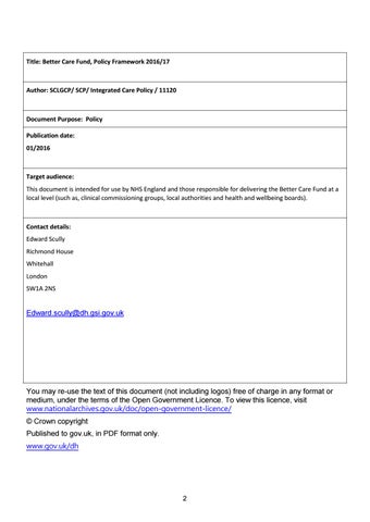Title: Better Care Fund, Policy Framework 2016/17