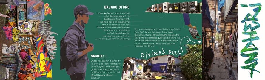 In this elective we tried to track the way hip hop has affected neighbourhoods and how neighbourhoods affect the hip hop community and it’s people in the Mumbai city. Each space of a neighborhood is divided into residential, practice and performance spaces, to show the disparity of the quantity of different spaces.