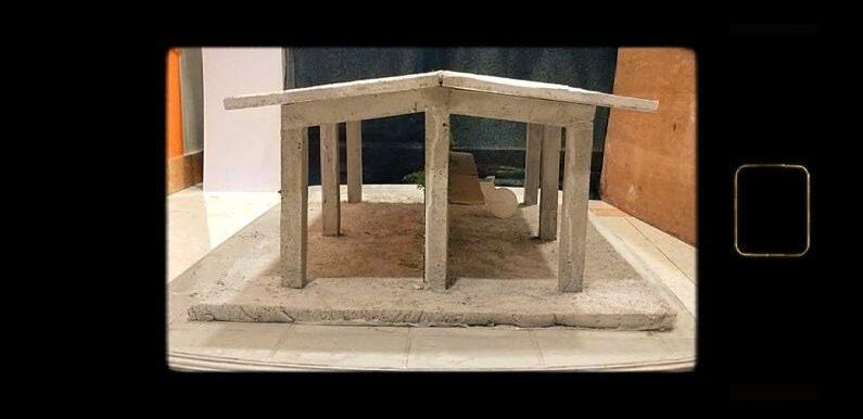 The task was to create a 1:100 scale physical concrete model of two wheelr parking shed , following same process and method used in construction sites, to understand the structural details of RCC structures.