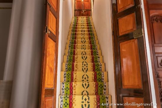 BUILDING MATERIALS USED The structural materials and key parts of this luxurious mansion include Roofs with terracotta tiles, teak columns, pillars & flooring with stone & marble, walls made of brick & lime plaster Because of the terracotta roof tiles, the intense heat is better kept out. The houses' gateways feature excellent woodwork carvings, and the lintel panels above the major entrances show images from Hindu mythology.