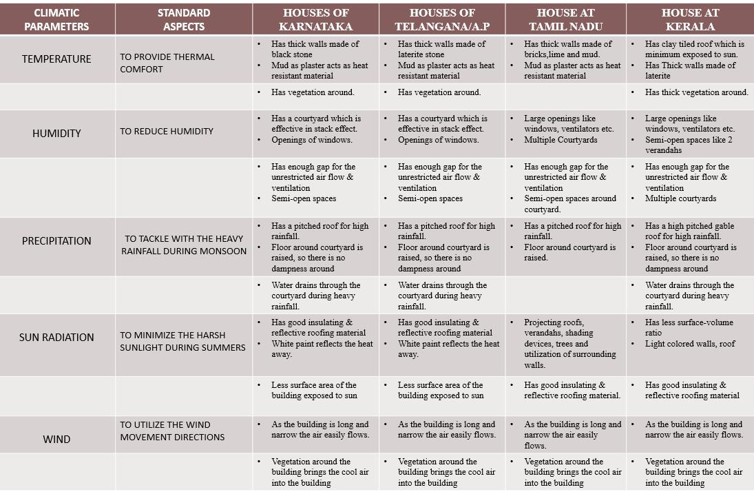 Table 3 COPMPARITIVE ANALYSIS BASED ON HOT & HUMID CLIMATE