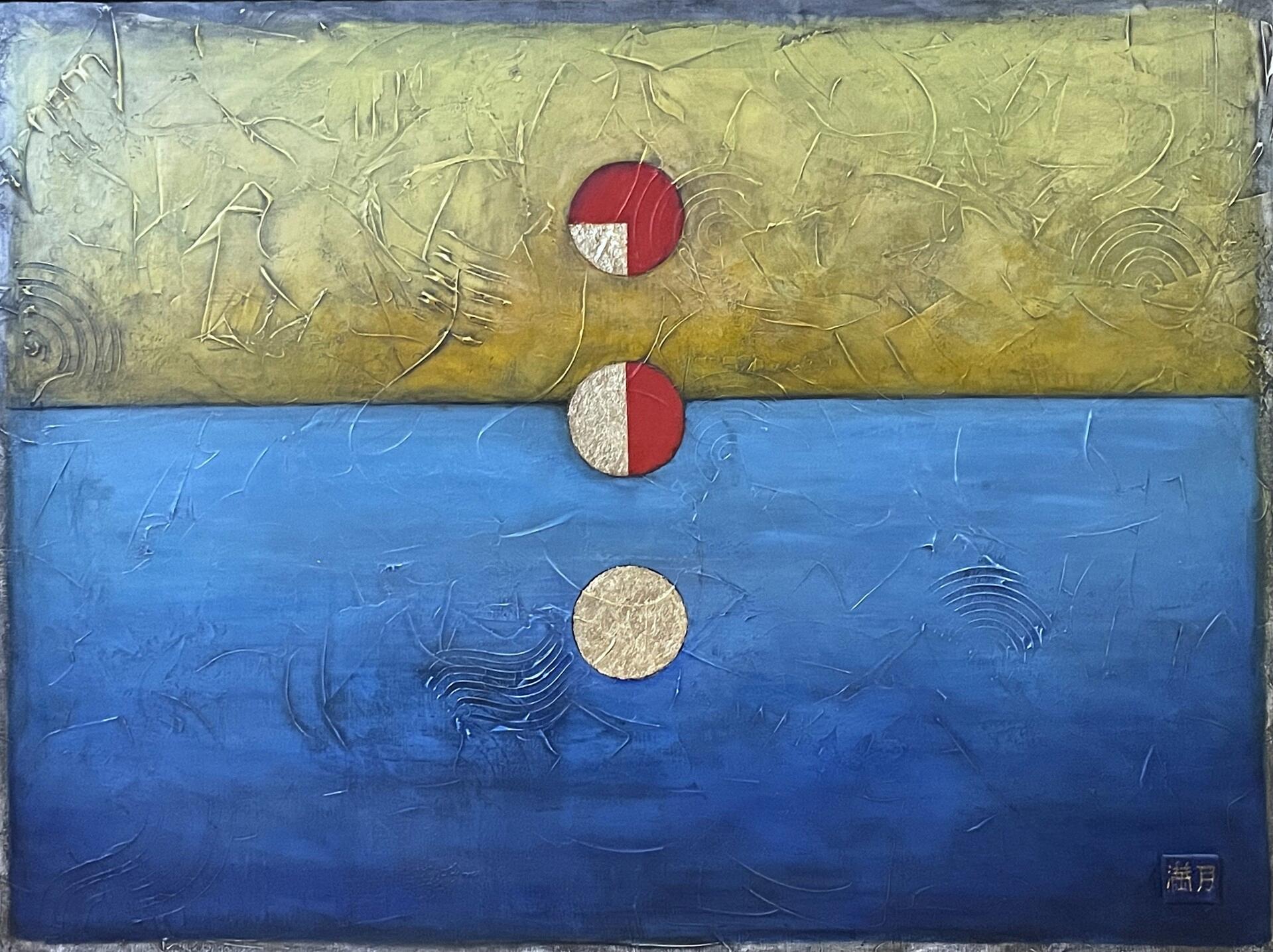 Acrylicontexturedcanvas - withgoldleafrepresentingphasesofthemoonabstract