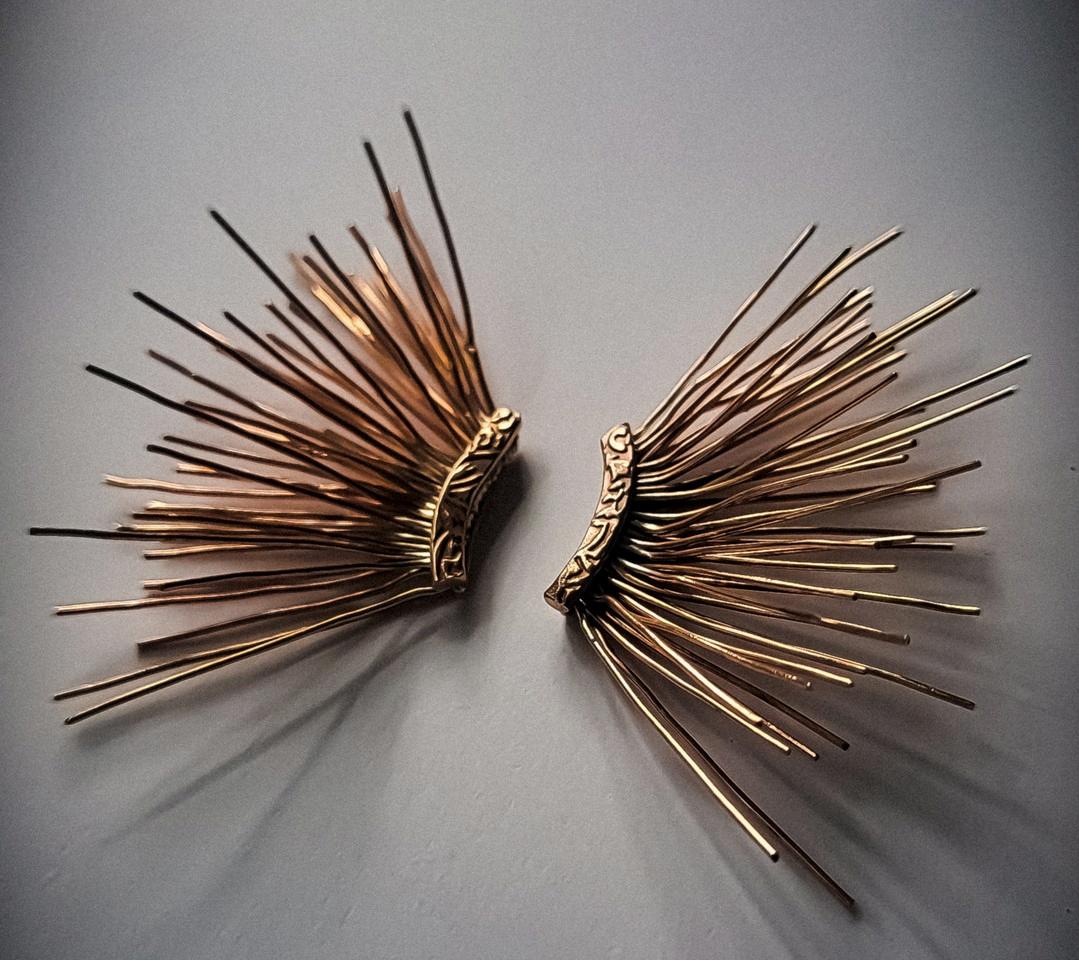 Brass, SterlingSilver Embracehautecouture airwiththeseone-of-a-kindbrassspikeearrings, evokingthe etherealbeautyofseaurchins InspiredbyParisianrunwayelegance, theypromisetoadornwithauniqueedge