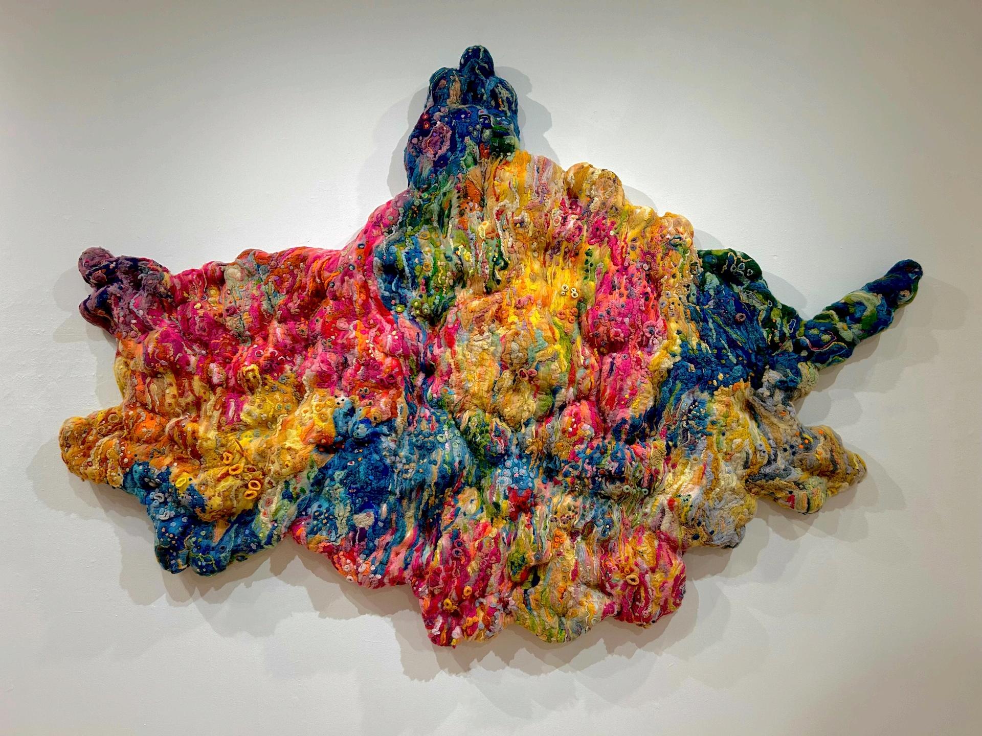 Feltedwool, insulationfoam, hardboard Myworkcelebrateschromaticandtexturalechoesinspiredbynature, translatingintotangibleexpressionsthatinviteviewerstoembracetheinterconnectionbetweenideasofcolor, form, andnovellandscape