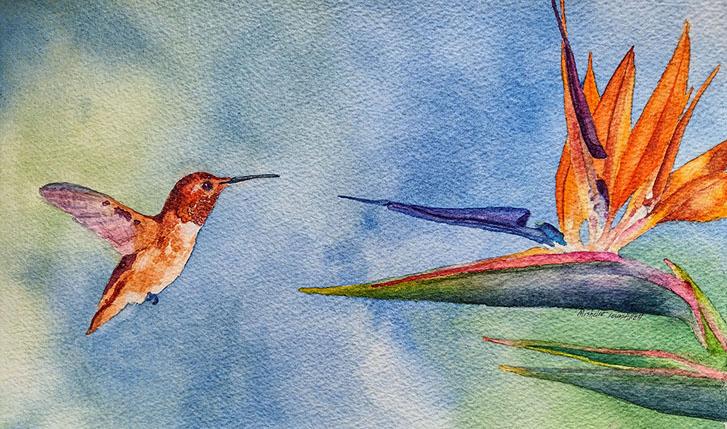 HummingbirdmeetingupwithaBirdofParadise