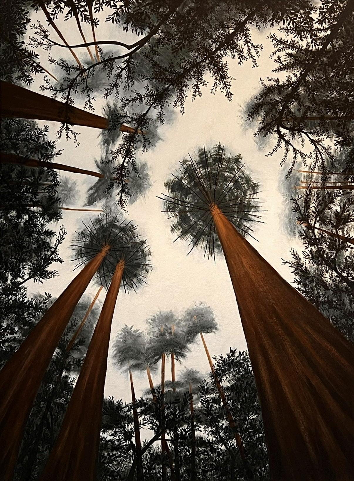 ThesizeanddurabilityoftheCaliforniaRedwoodsprovideanewperspectiveandanimpressivecontrasttothose whowalkamongthem Thispiecerequiredachallengingmathematicalexercisetoconveythedepthandvolume ofthetreescomparedtotheforest oor